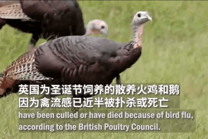 根据英国家禽协会的数据,英国为圣诞节饲养的散养火鸡和鹅因为禽流感已近半被扑杀或死亡。